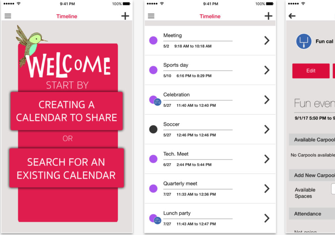 As a freelancer I lead the development for the MVP for Passel, which is not a calendar app but a hub for groups to share out their schedule regardless of the operating system members use. Passel is a free and easy way for groups and teams to communicate with members. Parents simply "follow" a team/group calendar and all events are automatically synced with their native phone calendar. If a date or time is modified followers are notified and iCal is changed automatically.